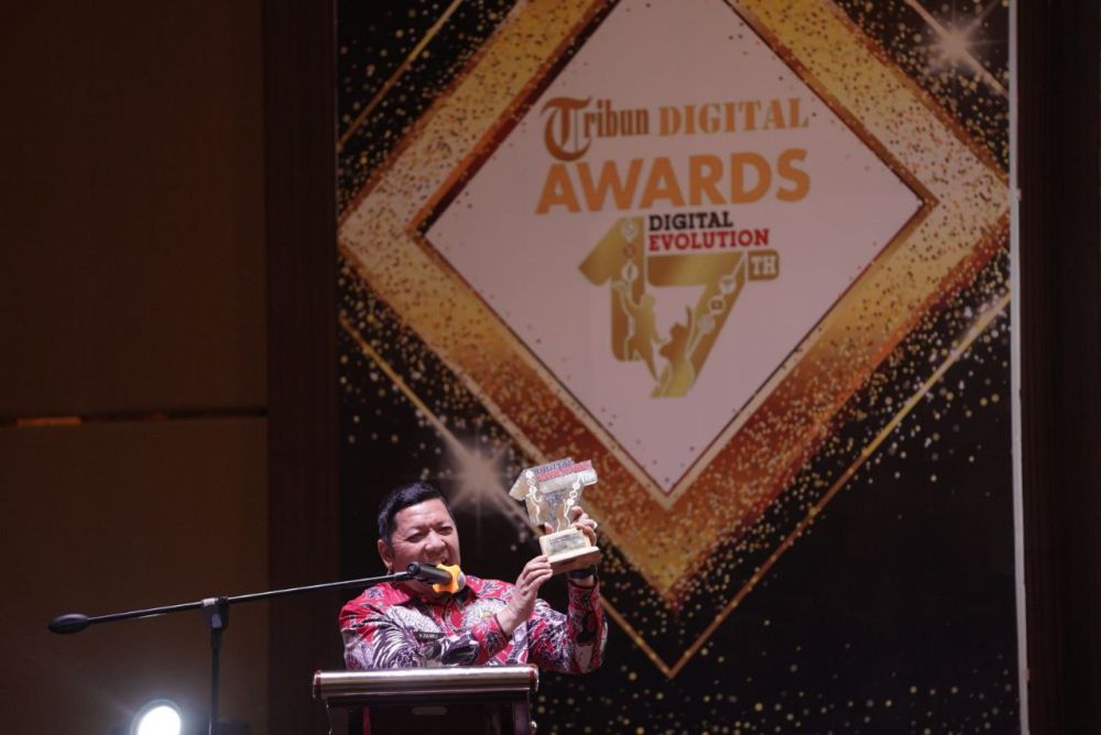 PEKANBARU - Penjabat (Pj) Gubernur Riau (Gubri) Rahman Hadi menerima penghargaan pemerintah peduli pembangunan dalam Tribun Digital Award 2024. Penghargaan tersebut diserahkan oleh Chief Executive Officer (CEO) Tribun News Network Dahlan Dahi kepada Pj Gubri yang diwakili oleh Asisten Setdaprov Riau Zulkifli Syukur.