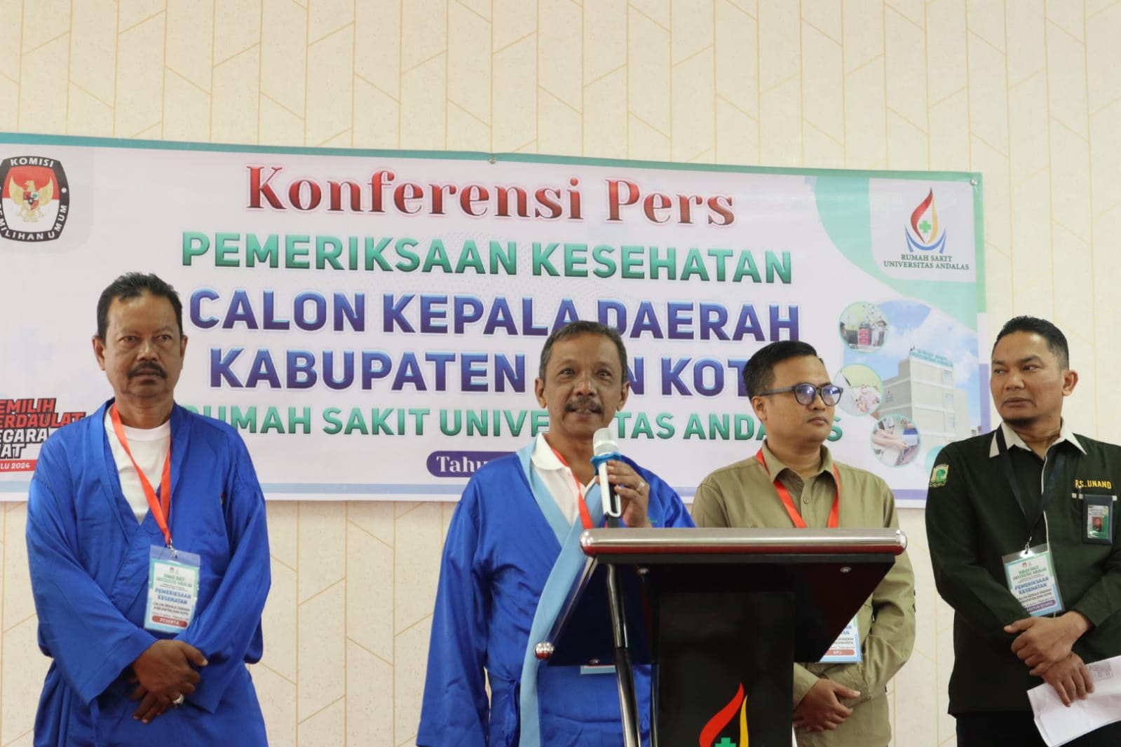Bacalon Kepala Daerah ( Bacakada ) Bupati dan Wakil Bupati Pasaman Mara Ondak dan Desrizal laksanakan tahapan PKPU Nomor 8 Tahun 2024 tentang pemeriksaan Kesehatan di Rumah Sakit Universitas Andalas Padang, Senin (02/09/2024).