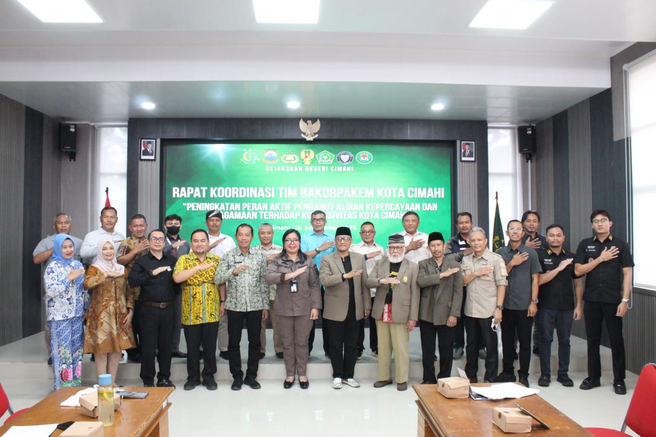 Cimahi Tiraskita.com.Kejaksaan Negeri Kota cimahi dalam kegiatan Rapat Koordinasi Tim Pakem Kota Cimahi dalam rangka menyamakan pandangan,serta memperkuat koordinasi dan membangun komitmen bersama dalam menjaga ketertiban umum, kehidupan beragama, serta persatuan dan kesatuan bangsa.